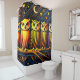 Esta cortina de chá tem um design de coruja nela.