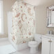 Cortina de chuveiro elegante com padrão botânico celestial apresentando luas, estrelas, planetas, olhos místicos e delicados ramos folhosos em um estilo minimalista preto e creme. Ideal para amantes da astrologia, buscadores espirituais, entusiastas da natureza e qualquer pessoa que ame estética celestial boho.