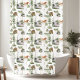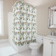 Lindas árvores rústicas, com cortina de chá de padrão de urso e raposa, em fundo branco neutro. Visite nosso compro para ver nossos itens de decoração de banho correspondentes.