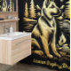 Esta cortina de chá apresenta um German shepherd de ouro sentado ao lado de uma fogueira em um cenário de floresta. É perfeito para amantes de cachorros e faz um presente de excelente para qualquer pai. Elevem a decoração do banheiro com nossa luxuosa cortina de chá preto e ouro com um German shepherd majestoso sentado orgulhosamente em uma colina. Esta peça única é perfeita para amantes de cães e adiciona um toque de sofisticação a qualquer banheiro.
