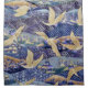 Gruas são símbolos de felicidade, equilíbrio, longevidade e juventude eterna por toda a Ásia. Esse detalhe de uma tapeçaria japonesa mostra guindastes voadores sobre a água, em tons de ocre (simulando ouro) e azul. Personalize para seu gosto!
