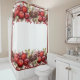 Bonito cortina de chá de Natal tem um tapete de banho correspondente. Criado com uma bela garland constituída por maçãs vermelhas brilhantes, cones de pínus, folhas sagradas e morangos vermelhos.