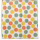 Esta cortina de chá tem um design geométrico de pontos em coral, ouro e sábio verde.