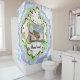 Esta cortina de chuveiro apresenta uma história em quadrinhos original de página única do mundo de Toe's Town.