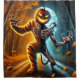 Esta cortina de chá de fantasia tem um estranho monstro de abóbora nela.