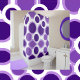 Um padrão de círculos sobrepostos em vários tons de roxo é apresentado contra um fundo branco. Os círculos criam um desenho repetitivo e abstrato, dando a aparência de um wallpaper digital ou geométrico.