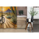 pintura por sol de uma bicicleta no deserto cercada por cactos