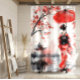 Step into a tranquil moment of timeless elegance. This watercolor-style shower curtain features a graceful geisha in a red floral kimono, strolling along a misty stone path beneath blooming cherry blossoms. Her parasol and traditional updo adorned with flowers evoke the refined beauty of Japanese culture. A distant pagoda shimmers through the haze, adding depth and serenity to the scene. Perfect for those who appreciate Japanese aesthetics, this design brings harmony, tradition, and seasonal charm to your daily ritual.