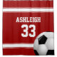 Você gostaria deste design numa combinação de cores diferente? Entre em contato conosco através da loja GiftsBonanza antes da compra e ficaremos felizes em ajudar com sua solicitação personalizada. Perfeito para o fã de futebol ou jogador de futebol cujas cores de equipe são vermelhas e brancas, com um design de estilo de camisa de futebol em vermelho com listras brancas e texto personalizável para seu nome e número. Uma bola de futebol também faz parte do design. Um presente divertido, desportivo e feminino de futebol.