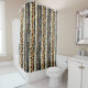 Warm geometric stripe pattern shower curtain featuring tribal-inspired diamonds, zigzags, and textured vertical bands in earthy brown, terracotta, tan, beige, and charcoal tones. A cozy boho design ideal for southwestern décor lovers, rustic style fans, and anyone drawn to earthy, handcrafted aesthetics.