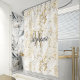 Cortina Para Box Script Monograma do Mármaco Branco Elegante Dourad