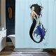 Uma sereia de tinta tribal com azul na cauda dela num pano de fundo azul claro.