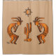 Decorre o seu banheiro com este único "Um dos tipos" de cobre do sudoeste de Kokopelli Cortina de Chá! Ele apresenta dois copos Kokopelli tocando flauta e dançando em volta de um cacto debaixo do sol em um fundo de bronzeado! Este é um Design de Arte Original do Artista Kerry Miller.