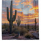 Fotografia sudoeste da codorniz do pássaro no nascer do sol na cortina de chá do banheiro da paisagem do deserto. Arizona Desert Saguaro Cactus nuvens vibrantes na paisagem, e pássaros codornizes se assoprando à luz do sol. Arte de decoração do banheiro do deserto, personalize para seu gosto de decoração de casa ou escritório. Fotografia do sudoeste da montanha desert a tirar fotografias. Pássaros e Deserto da paisagem sudoeste.