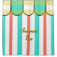 Summetime cabana inspired. Turquoise and coral vertical stripes against white background. Pastel yellow watercolor stripes across scalloped white and turquoise top. Designs by TamiraZDesigns.