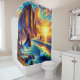 Esta cortina de chá tem um design de pôr do sol.