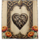 The heartbeat of the ancient gods: A magical Celtic frame. An ornate, Celtic-inspired frame with complex knot patterns in gold and brown tones. A spade-shaped ornament with a knot is located at the top, and a heart-shaped knot is located at the bottom, flanked by vibrant orange and red flowers. The design combines tradition, strength, and vitality.