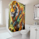 Esta cortina de chá tem uma criatura de lagarto tigre nela.
