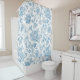 Refresh your bathroom decor with our new shower curtain design, featuring an elegant Toile-de-Jouy Chinoiseries blue floral pattern beautifully framed on a custom white background.