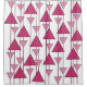 Este design de cortina de chá tem triângulos rosas amarrados em linhas verticais num campo de branco.
