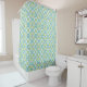 Esta cortina de chá está em cor turquesa e verde limão no estilo de ornamento geométrico.