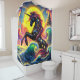 Esta cortina de chá tem um unicórnio colorido.