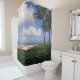 Palmeiras, céu azul com nuvens brancas puffy, uma vista do oceano Atlântico, todas capturadas na fotografia original da entrada de Júpiter por ZoeSPEAK nesta cortina de Chá. Uma camada verde de folhas de uva-do-mar enquadra a parte inferior dessa relaxante e tropical foto. Aproveite a vista!