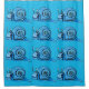 Esta cortina de chá para seu banheiro é uma cor azul bonito com fileiras dos caracóis de rastejamento bonitos que são várias máscaras de claro e de azul escuro com caras de sorriso.
