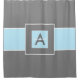 Cortina Para Chuveiro Monograma azul-claro da cinza personalizado