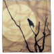 Solitário corvo em um galho na silhueta contra um fundo bege coberto na sombra de galhos Feito combinando duas fotos que tirei juntas e algumas edições para textura