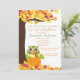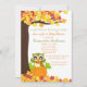 Olhe Whoo tendo um bebê! Comemore um bebê que chega com este convite do chá de fraldas. Tem um fundo colorido com uma árvore que tenha as folhas brilhantes da queda do outono no vermelho, no amarelo e na laranja. Há uma coruja verde bonito que senta-se sobre uma abóbora. Personalize adicionando sua informação do partido no centro. Verifique para fora os muitos outros produtos e design nesta coleção.