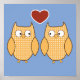 Perfeito para o quarto ou sala de jogos de uma criança - design de duas corujas em pé junto com um coração vermelho de amor entre elas em um fundo azul-céu. Design de desenho animado e bonito inspirado pelo amor e amizade.