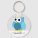 Chaveiro personalizado bonito com ilustração de uma coruja azul e personalizado com seu nome ou texto. Excelente para amantes de coruja, como presente, ou pode ser dado como favoritos para festas em um chá de fraldas.