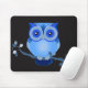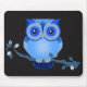 Coruja Azul no Mousepad Preto