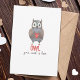 Um cartão de Dia de os namorados de coruja fofo para aqueles que amam trocadilhos doces. O cartão diz: "Coruja que você precisa é amor!" A parte traseira do cartão tem espaço para uma mensagem manuscrita com um sotaque de ilustração coruja correspondente.