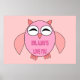 Esta poster apresenta um desenho fofo de uma coruja rosa com olhos sonolentos, um pequeno bico e pequenos pés fofos. Há um texto cor-de-rosa brilhante dentro da barriga das corujas que diz, "Coruja Sempre Te Ama". Este é o presente perfeito para mostrar a alguém especial o quanto você os ama.