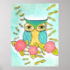 A coruja conhecida como sábia para ela sentou-se e pensou sobre coisas que outros pássaros e animais simplesmente não têm tempo ou inclinação para pensar. Impressão da ilustração de Pip Gerard. Meio usado - aquarela e tinta. Assunto: Coruja/ave/fantasia/jardim/flores