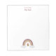 Um pequeno bloco de notas para bibliotecários ou professores com uma pequena coruja em um livro debaixo de um arco-íris. Personalize-o com seu texto e um nome. Este design também está disponível em notas adesivas. © ArianeC Ilustrações — Todos os direitos reservados