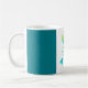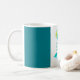 Coruja verde com a caneca azul das beiras