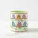 Esta caneca tem um design com as corujas ilustrativas, coloridas bonitos que sentam-se em ramos com flores pequenas ao redor. Este produto pode ser personalizado mudando a cor do fundo na desejada (o uso a personaliza, edita, função (avançada) do fundo). O quadro nesta caneca é parte do design.