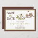 Ao mesmo tempo, guarde os cartões de convite com duas corujas bonitinhas sentadas num galho com um coração numa bolha de palestras acima deles. Borda castanha e verde sobre fundo branco. Personalizado com suas informações no espaço fornecido. Obter a Coruja correspondente Guardar os carimbos de Data abaixo:
