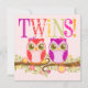 " GÊMEOS!" As corujas adoráveis deste bebê das características do convite do chá de fraldas em cor-de-rosa e no roxo - perfeitos para uma menina junta o chá de fraldas - editam simplesmente a informação com sua própria informação para convites perfeitamente personalizados {{o clique PERSONALIZA para mudar o fundo cor-de-rosa a toda a cor que você goste… de você pode igualmente mudar cores e pias batismais de texto para algum do texto}}