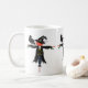 Tragam um pouco de chorume para suas bebidas quentes com esta caneca divertida com um espantalho da cabeça de abóbora e seu corvo bff.