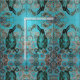 a pintura de um corvo preto grande em um fundo azul com um rosa e o ouro paisley circundam o teste padrão de ponto.