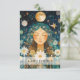 Beautiful woman, mystic woman illustration, moon, stars, daisy, green, gold business gift certificate.