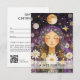 Beautiful, woman, mystic, woman illustration, moon, stars, daisy, purple, gold business gift certificate.