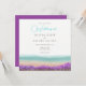 Convite de casamento com o Azure Brilhante e a paisagem da natureza magenta rosa com costa e montanhas florescentes. A paisagem floral da Sunny Nature. Silhuetas de montanhas, costa marítima e flores rosa-claro e roxas. Concurso de Casamento de Pintagem de Aquarela. Costa do Azure na Coleção Bloom.