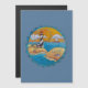 Ilustração costeira - Uma cena de praia de ilha realmente fofa com sol, farol e veleiro. Este dia da costa é um gráfico bonito da artista Mary Hubley. Cores brilhantes e cena divertida para o amante da praia.