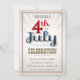 Festivo, divertimento e 4o elegante do convite de julho. Comemore o Dia da Independência americano com o partido branco e azul vermelho clássico do verão. Perfeito convide para seus cookout do churrasco e recolhimento dos fogos-de-artifício. Ilumine o fundo com elementos do vermelho, do azul e do ouro. Da bandeira americana do gráfico parte traseira subtil sobre. O quarto de julho convida.