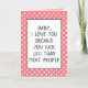 Cartão de saudação bonito com uma citação engraçada para o amor de sua vida, marido ou esposa, menino ou namorada, ou mesmo sua mãe ou pai, em um fundo de bolinhas cor-de-rosa e branco, cor-de-rosa e cinza, empoeirado. Com a opção de personalizar com nome, palavra ou texto (limitado) de sua escolha. Deixe que aqueles com senso de humor saibam que você os ama até a lua e de volta com este sarcástico e humorístico 'EU TE AMO PORQUE VOCÊ SUCA MENOS DO QUE A MAIORIA DAS OUTRAS citações PESSOAS.
